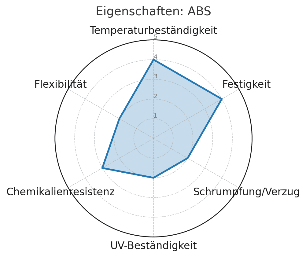 Acrylnitril-Butadien-Styrol-Copolymer (ABS) wird dann eingesetzt, wenn PLA und PETG scheitern würden.